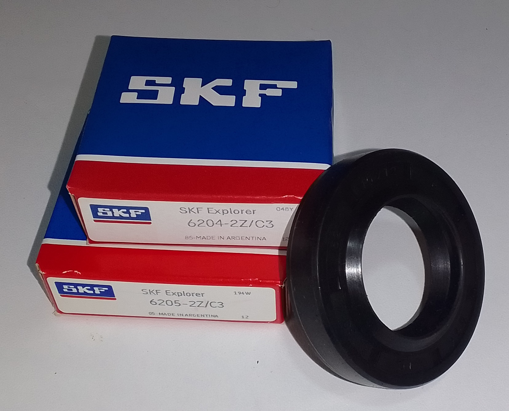 Kit de rodamientos 6204 2Z C3 SKF + 6205 2Z C3 SKF + 1 retén de 30 x 52 x 10 mm.