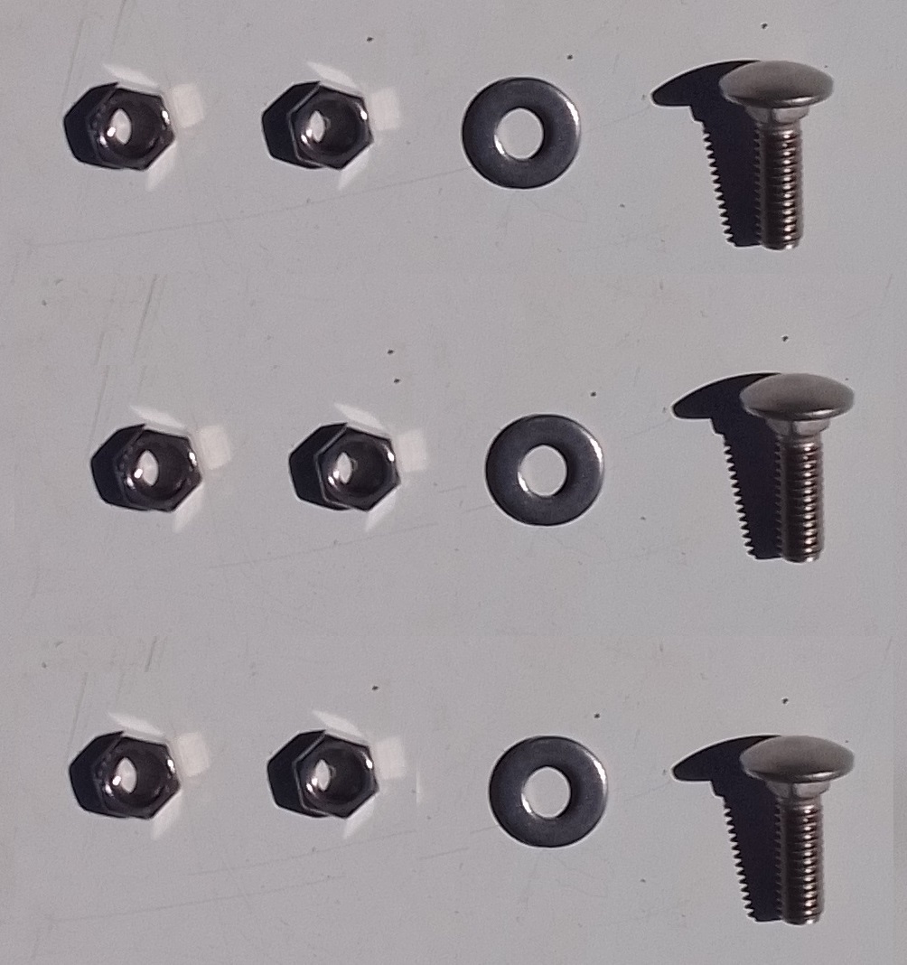 Consta de 3 bulones, 6 tuercas y 3 arandelas